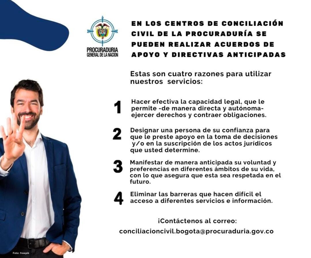 Los seis centros de conciliación en materia civil y comercial de la PGN prestan el servicio de formalización de acuerdos de apoyo y suscripción de directivas anticipadas conforme a la Ley 1996 de 2019 y sus decretos reglamentarios.