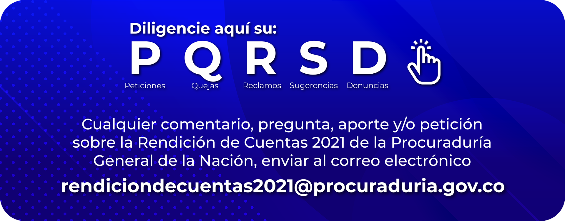 Rendición de Cuentas 2021 Documentos de la Rendición de Cuentas Informe final evento ProMujerdel 24 de noviembre de 2021Plan de Mejoramiento de Auditoría Rendición de Cuentas PGN 2020-2021Conozca el calendario de eventos de diálogoEventos, capacitaciones y seminarios de rendición de cuentas de la Procuraduría Preguntas y respuestasMemorias
